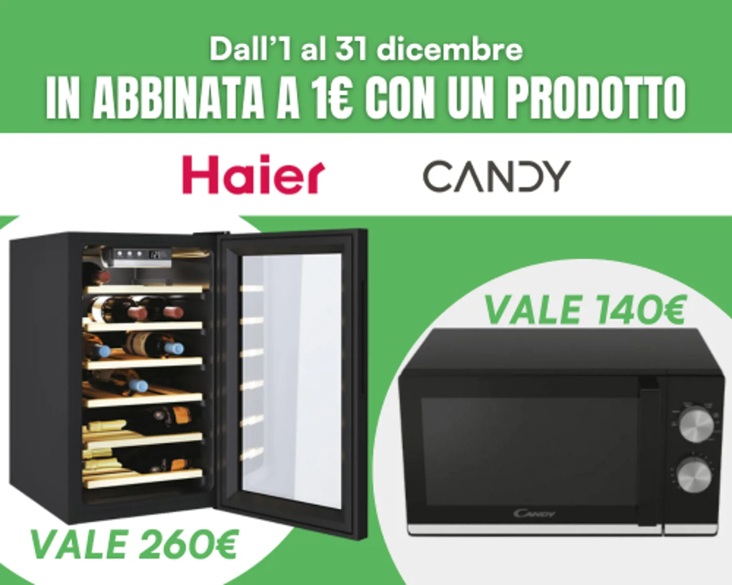 Acquista uno GRANDE ELETTRODOMESTICO a marchio CANDY o HAIER da almeno 399€, in abbinata avrai un microonde Candy del valore di 140€